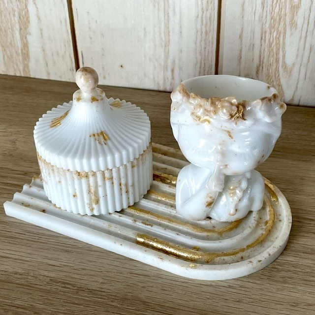 Magnifique cache pot en résine époxy de couleur Blanc-Or, pour un cadeau original.