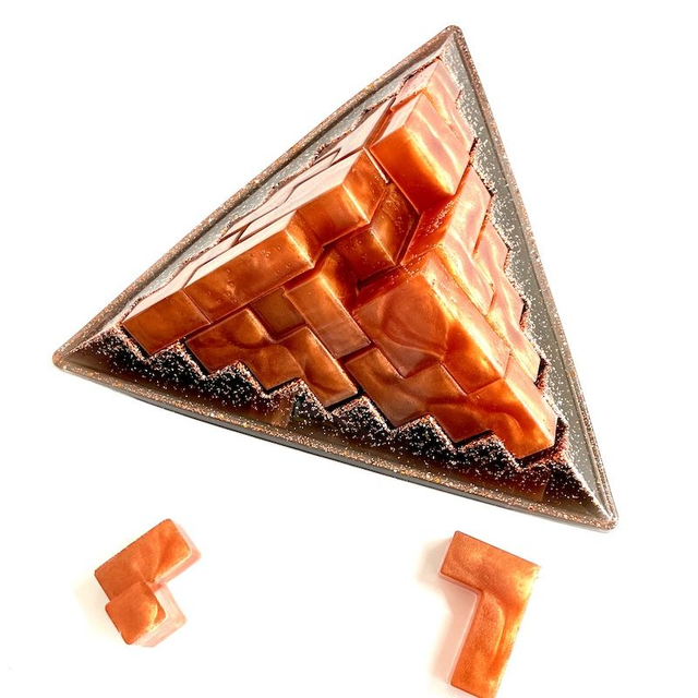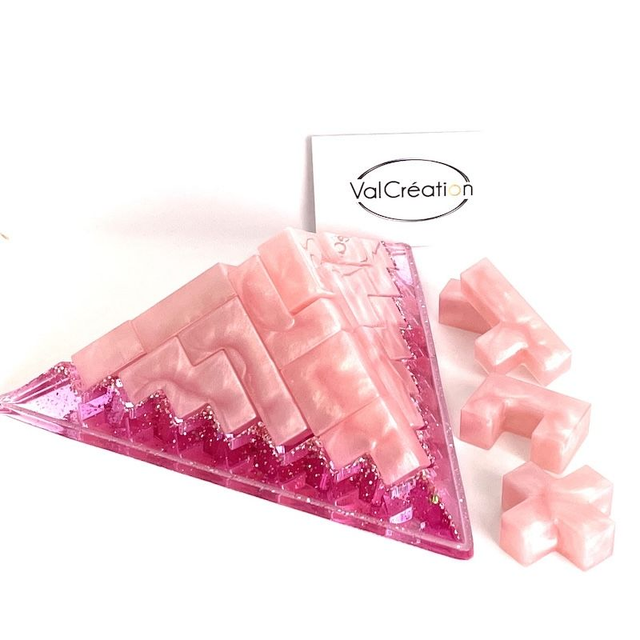 Magnifique casse-tête Pyramide 23 pièces en résine époxy, dimensions 19,5x19,5 cm & hauteur 8 cm environ. Couleur au choix.