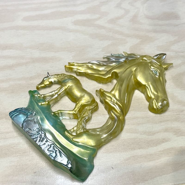 Magnifique décoration murale ou à poser cheveaux en résine époxy, de dimensions 12x20 cm & épaisseur 1,8 cm environ. Couleur au choix et personnalisable.