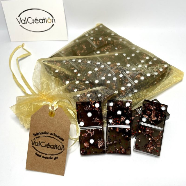 Magnifique jeu de Dominos en résine époxy. Dimension d'un domino 2,3x5 cm environ. Couleur au choix.