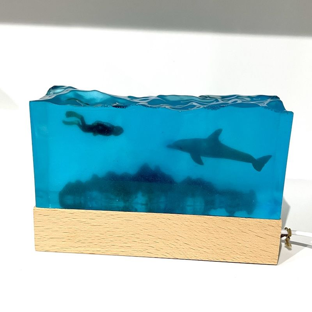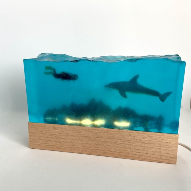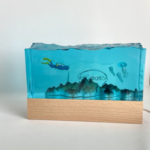 Magnifique lampe Océan en résine époxy, de dimension à la base 15x4,5 cm & hauteur 10 cm environ.