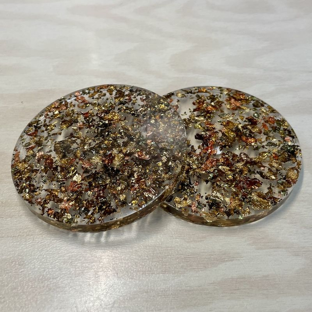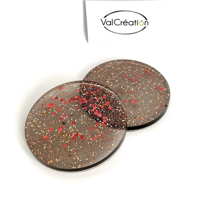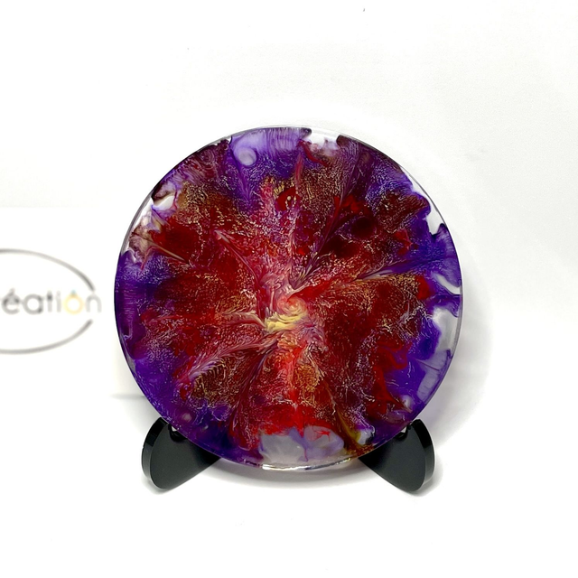 Magnifique sous-verre en résine époxy, de diamètre 9 cm et épaisseur 0,8 cm environ. (Vendu sans support).