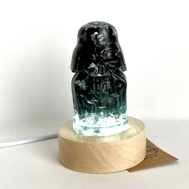 Magnifique veilleuse chevalier noir, Dark Vador en résine époxy, de diamètre à la base 6 cm & hauteur 10 cm environ.