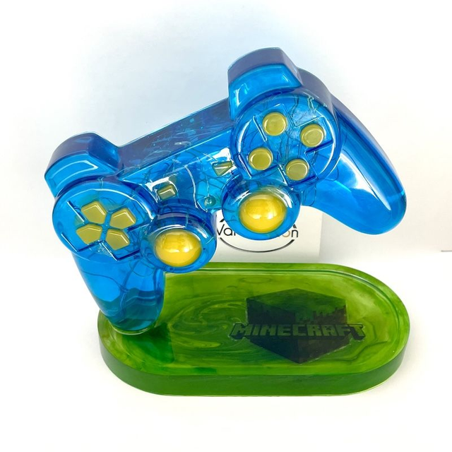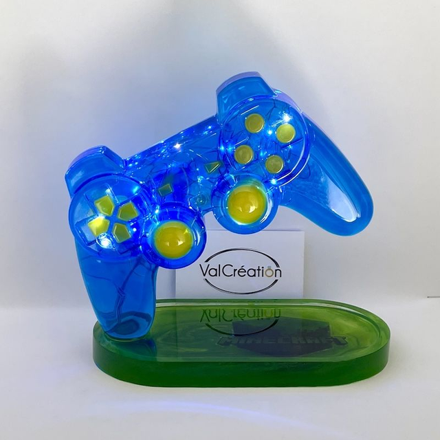 Magnifique veilleuse manette sur plateau en résine époxy de couleur au choix, dimension 19x10 cm & hauteur 18 cm environ.