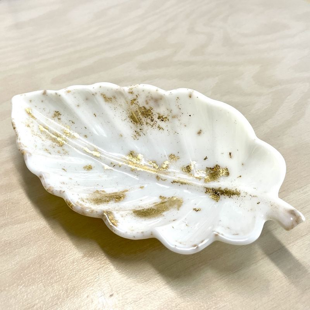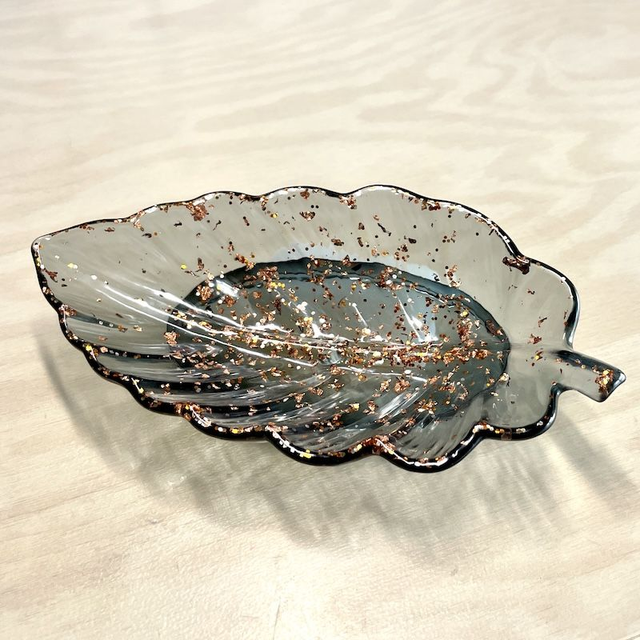 Magnifique vide-poche feuille d'automne en résine époxy, de 18x9,5 cm & épaisseur 3,5 cm environ.