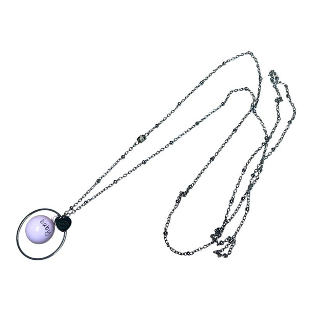 Magnifique Bola de grossesse "BABY ROSE" en acier inoxydable couleur argent, sur chaine 95 cm et pendentif 3 cm environ. Poids du bijou 11g.